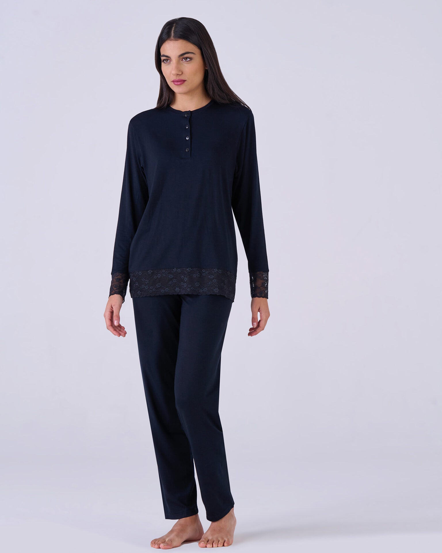 Pigiama donna viscosa Modal è il capo nightwear perfetto da indossare durante la stagione autunnale e invernale. Il tessuto in viscosa risulta morbido al tatto e confortevole. La maglia di questo modello è a serafino.