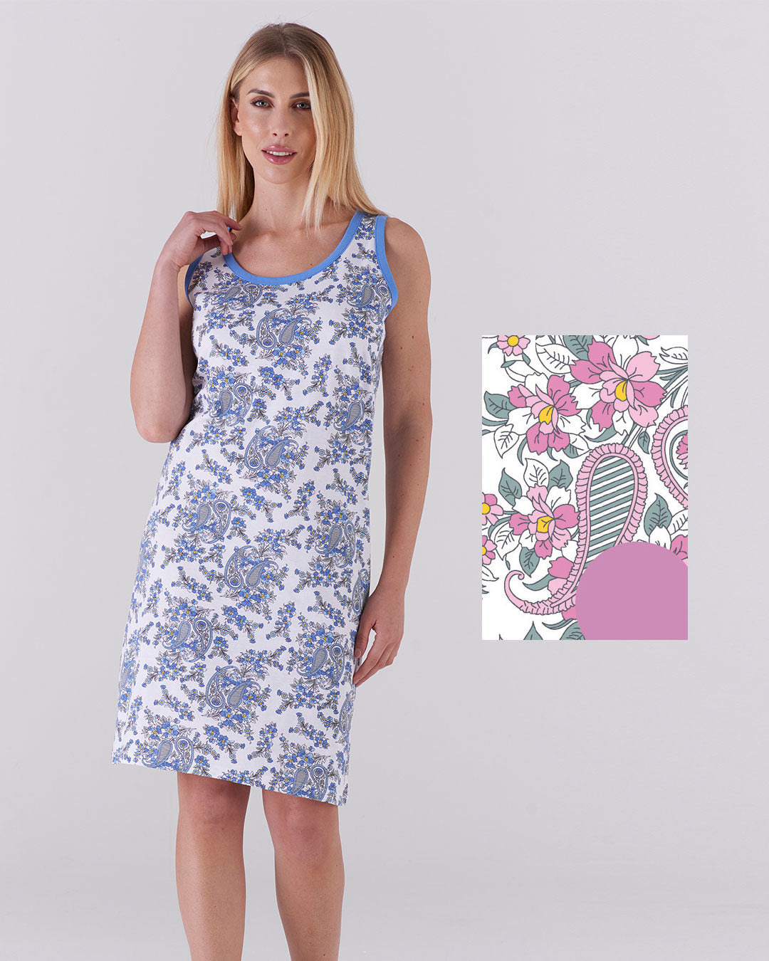 Camicia da notte giromanica con fantasia floreale e bordino a contrasto.