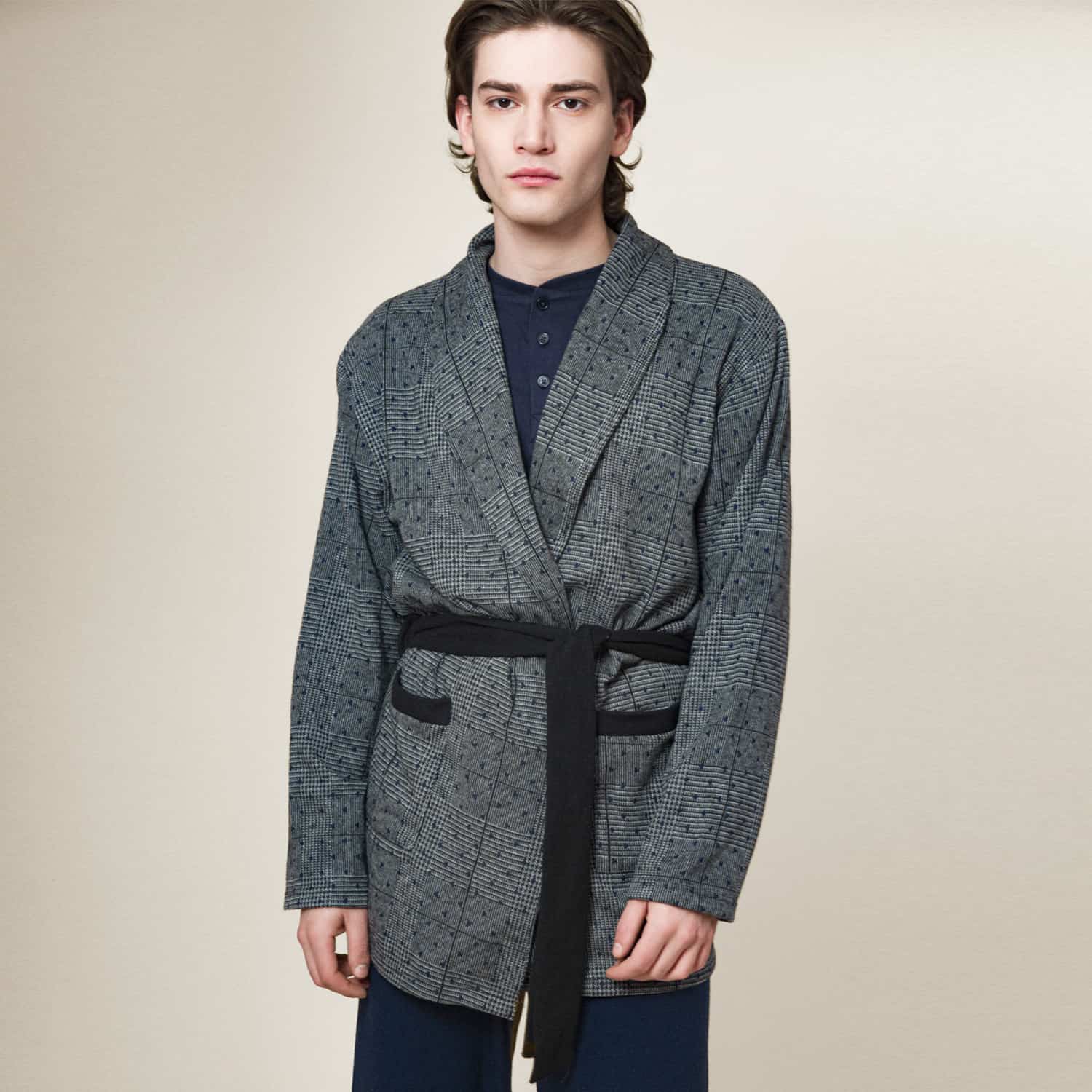 Giacca da camera con cinta in Punta Milano della Collezione Autunno-Inverno.
