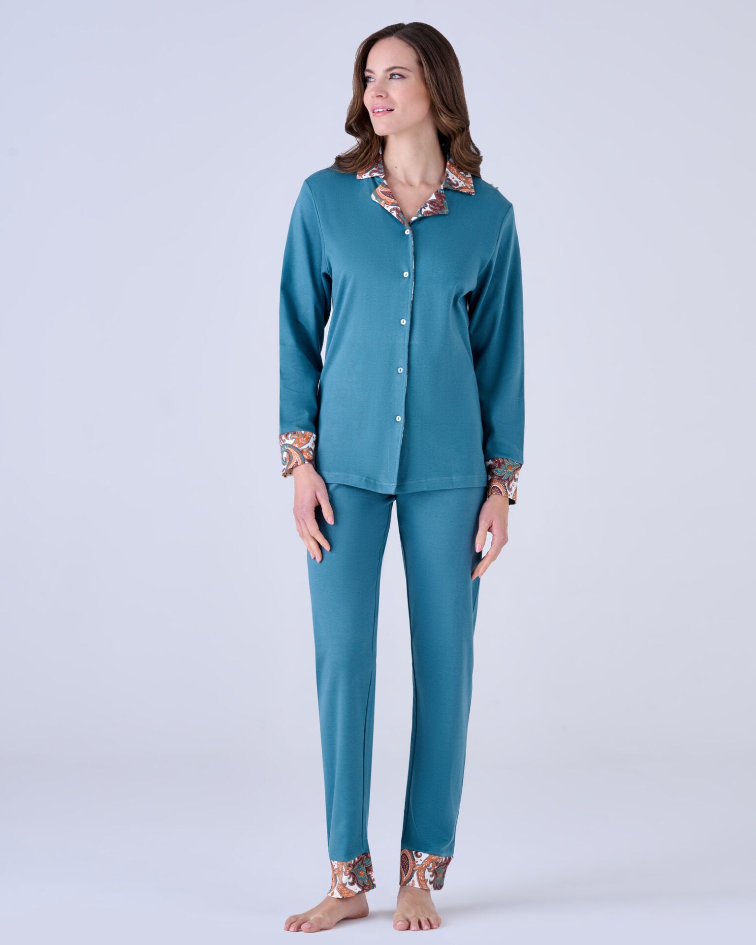Scopri il nostro Pigiama Donna Aperto Ottanio, un capo d’abbigliamento pensato per garantire il massimo del comfort senza rinunciare allo stile. Realizzato in morbido tessuto interlock, questo pigiama è ideale per le notti fresche e per le serate di relax a casa. Il suo colore ottanio, elegante e ricercato, aggiunge un tocco di originalità e freschezza al tuo guardaroba notturno, facendoti sentire unica e alla moda in ogni occasione.