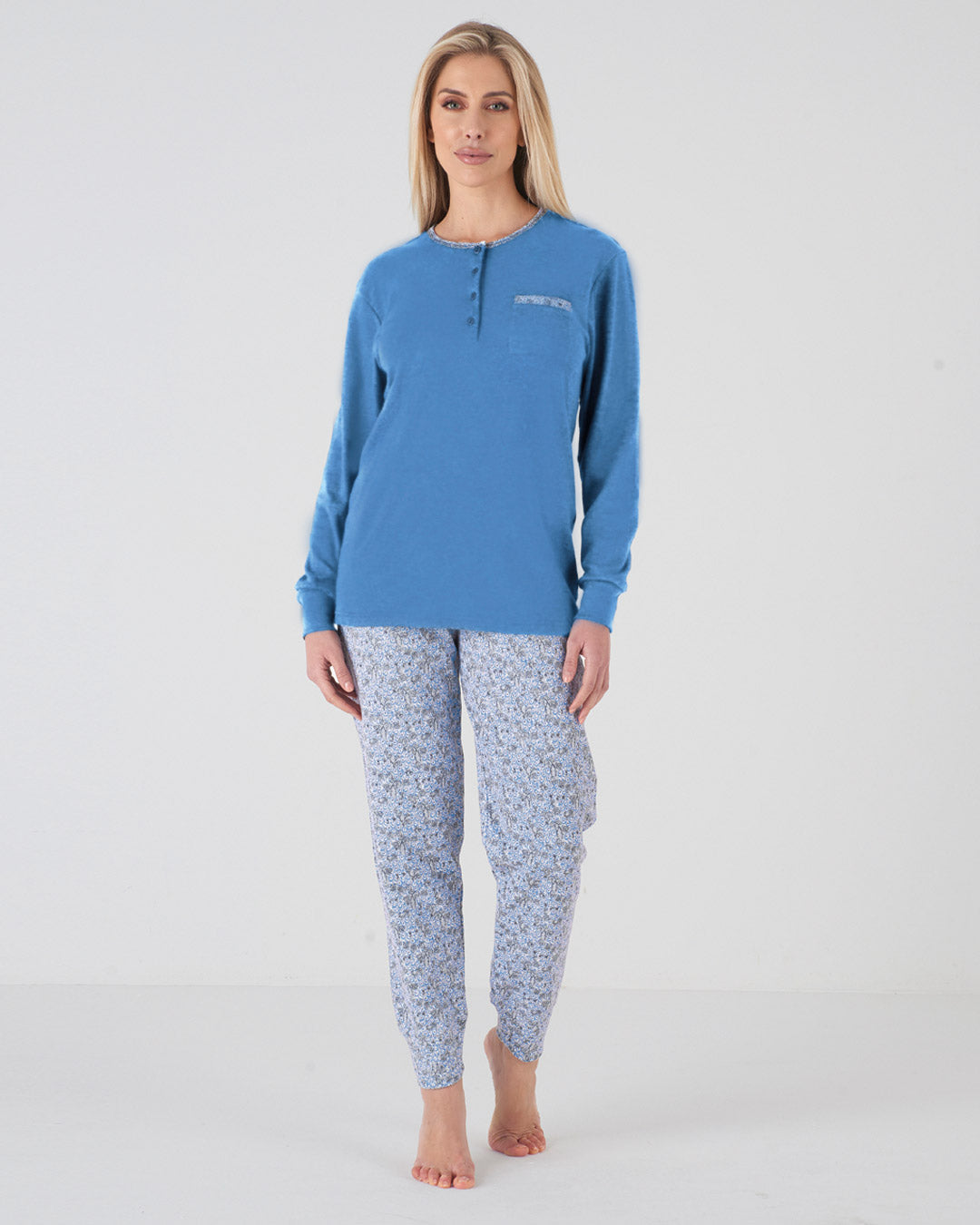 Pigiama donna caldo cotone fiorellini: