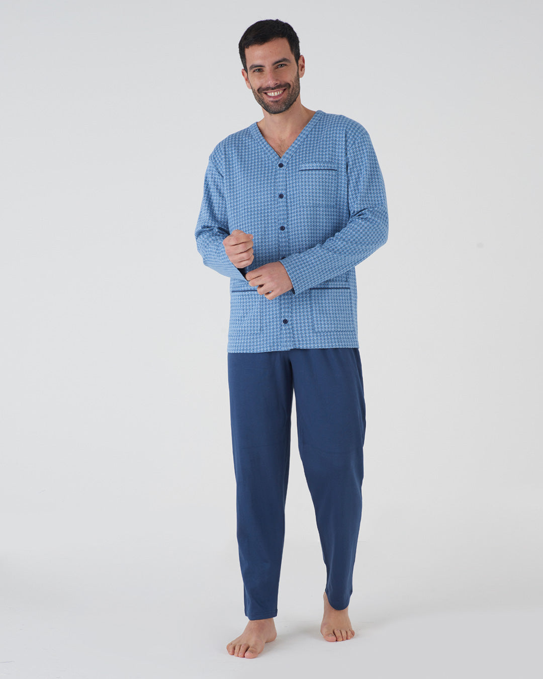 Il pigiama uomo aperto in caldo cotone è il capo nightwear perfetto per la stagione autunnale e invernale. Il tessuto in caldo cotone risulta caldo e confortevole.